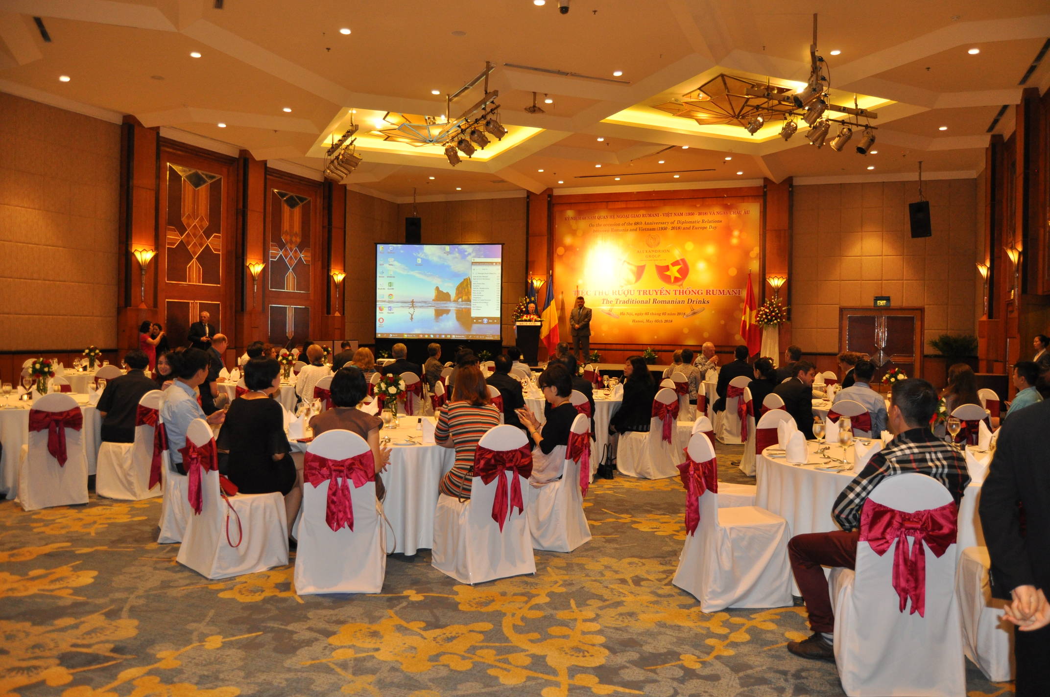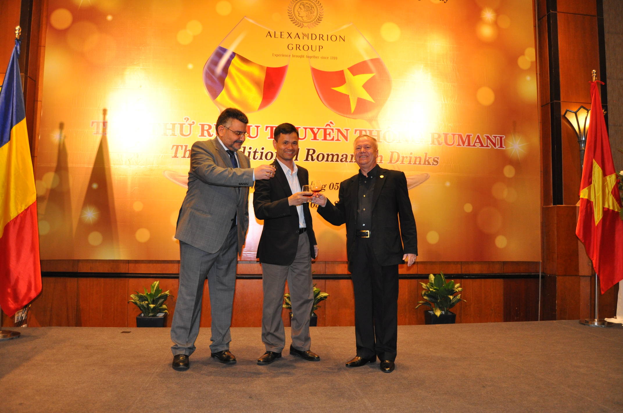 The Traditional Romanian Drinks is part of a series of events organized by the Romanian Embassy in Hanoi aimed to promote Romanian products on the Vietnamese market. The Head of the Romanian diplomatic mission in Hanoi, Mr. Valeriu Arteni, and Alexandrion Group Vice-President, Mr. Stelios Savva attended the event. Also diplomatic officials accredited in Hanoi, representatives of the Vietnamese Foreign Ministry, of the Vietnam Chamber of Commerce for the East and the Center of Europe, local authorities, members of the business community and of the Vietnamese community that studied in Romania and specialized Vietnamese media attended The Traditional Romanian Drinks in Hanoi at the Melia Hotel.